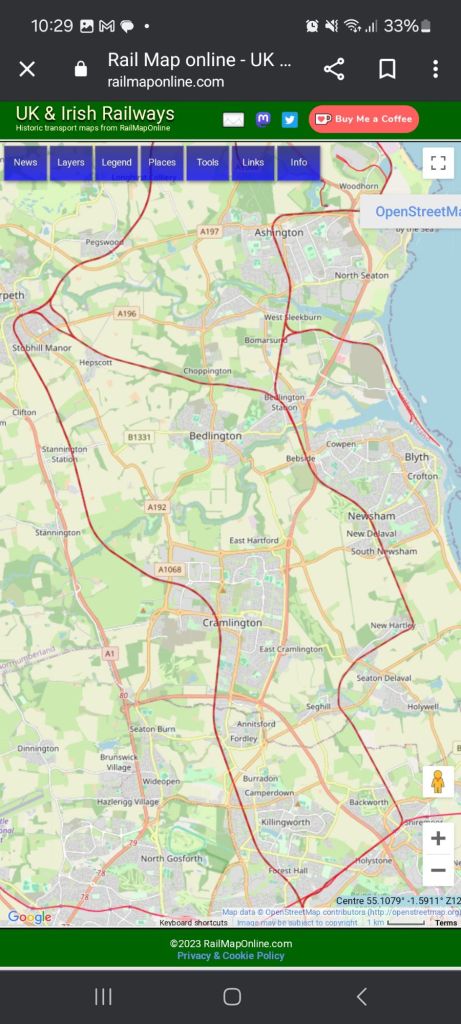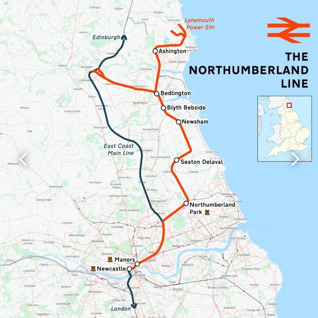 As of February 2024, the East Coast Main Line (ECML) is the only passenger carrying line along the Northumberland Coast, running between Newcastle and Berwick via Cramlington and Morpeth (the dark blue line on the second map).