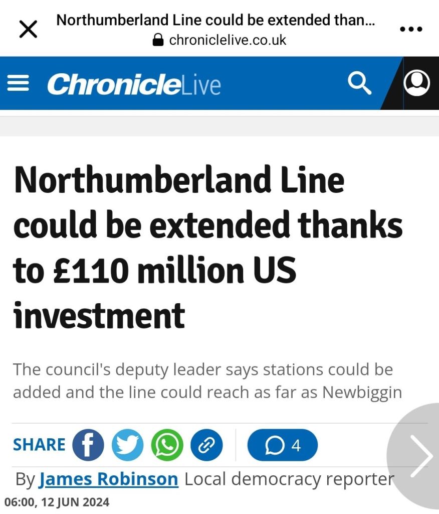 A recent Chronicle article suggested that the recent investment by Blackstone into Cambois could be ploughed back into the local area to realise expansion of the Northumberland Line, in this case toward Newbiggin by the Sea.