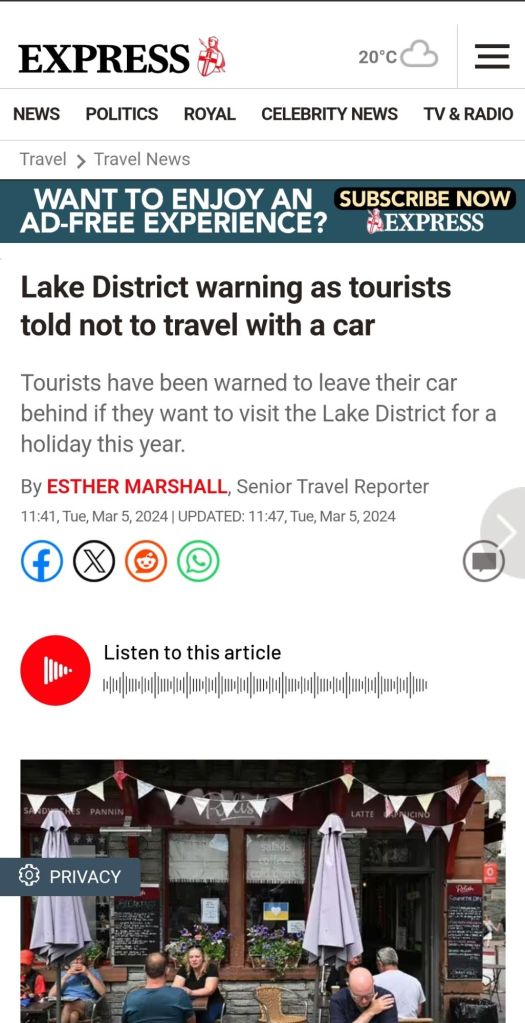 Below are two typical headlines seen on major news outlets, the first from the BBC, and the second from The Express. Northumberland could and should develop its tourism industry, but should aim to maintain its ‘unspoilt’ nature by avoiding a car dominant approach to tourism.