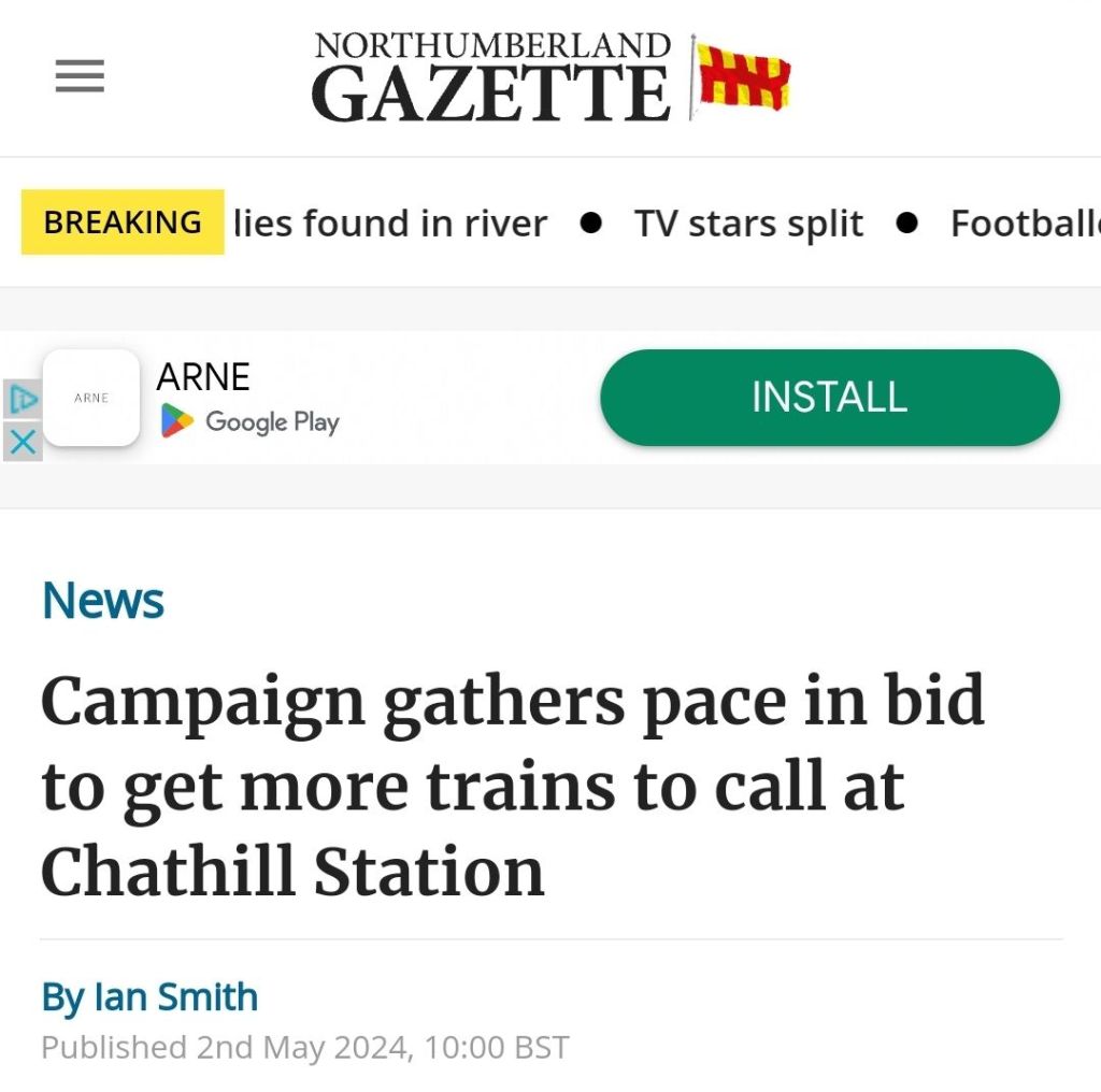 It isn’t just this campaign that is setting out to see improved rail services; with the independent Chathill Rail Action Group campaigning for improved rail services too as can be seen from a recent news article below, but also long-standing campaigns from national groups like Railfuture with their North of Morpeth campaign.