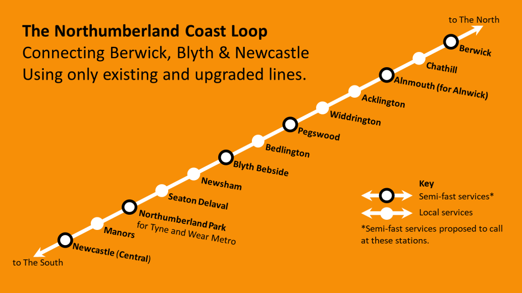 The train above would almost certainly have followed the proposed route of the Northumberland Coast Loop, coming off the East Coast Mainline at Morpeth North Junction, passing through Hepscott village, then Bedlington, before continuing down what is soon to reopen as the Northumberland Line later this year and into Newcastle.