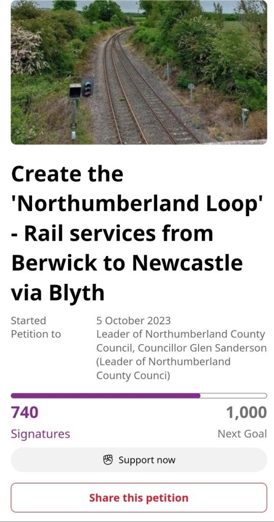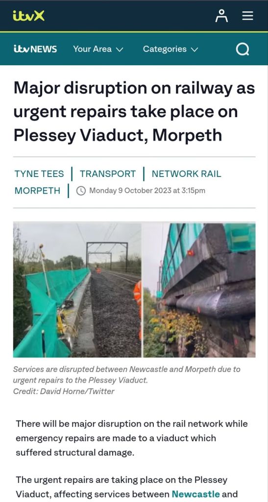 The Northumberland Coast Loop petition slightly predates this event occuring, being launched on the 5th October 2023, just days before the viaduct as Plessey suffered from a parapet issue, but highlights the potential usefulness of this route for diversionary purposes.