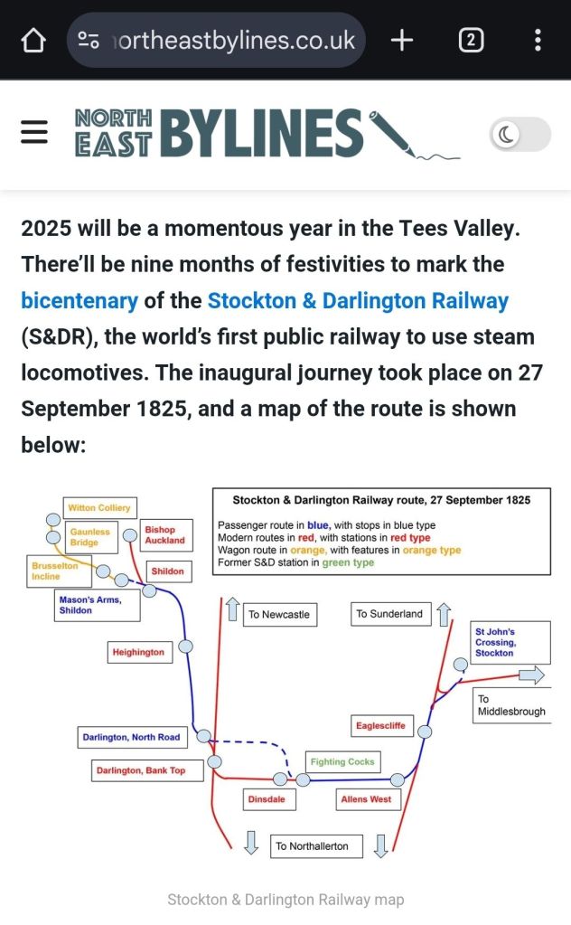 This recent article from North East Bylines, a ‘Whistle-stop tour of the Stockton and Darlington‘ shows quite clearly how much of the S&D survives as a passenger carrying route, particularly the section from Shildon in the west to Eaglescliffe and towards Middlesbrough.