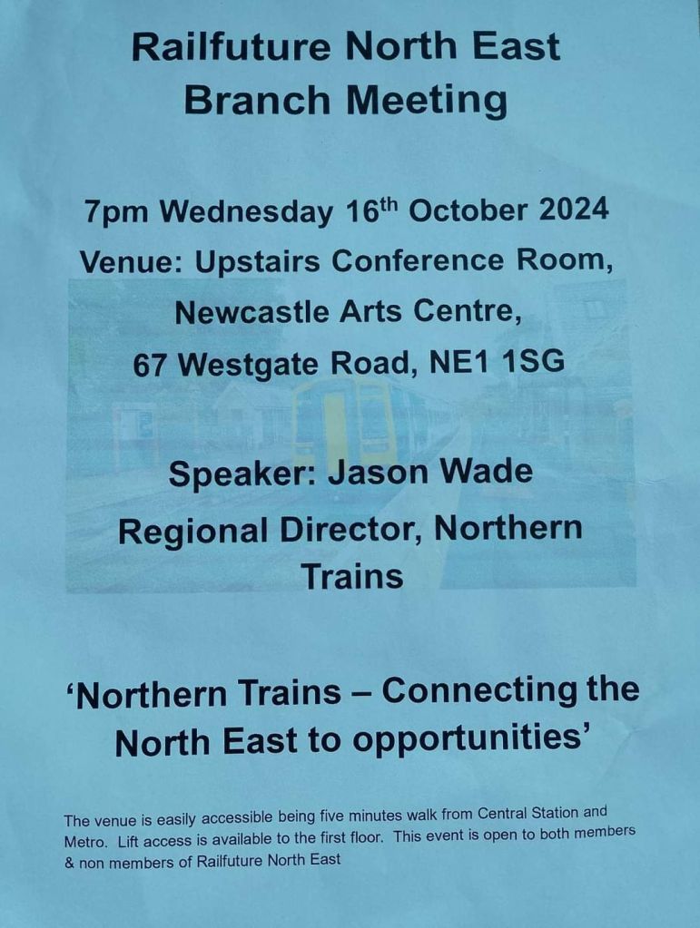 A third approach was made to Jason Wade of Northern Trains at the recent Railfuture North East Branch meeting on Wednesday 16th October 2024, questions being put forward by a fellow committee member as I couldn’t attend in person that evening.