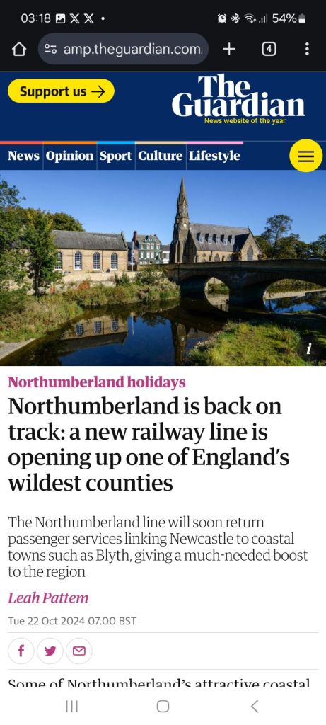 This article from The Guardian seems to infer a reference to the proposed Northumberland Coast Loop while talking about the soon to open Northumberland Line, could we see it in 2025 with just a modest further investment?