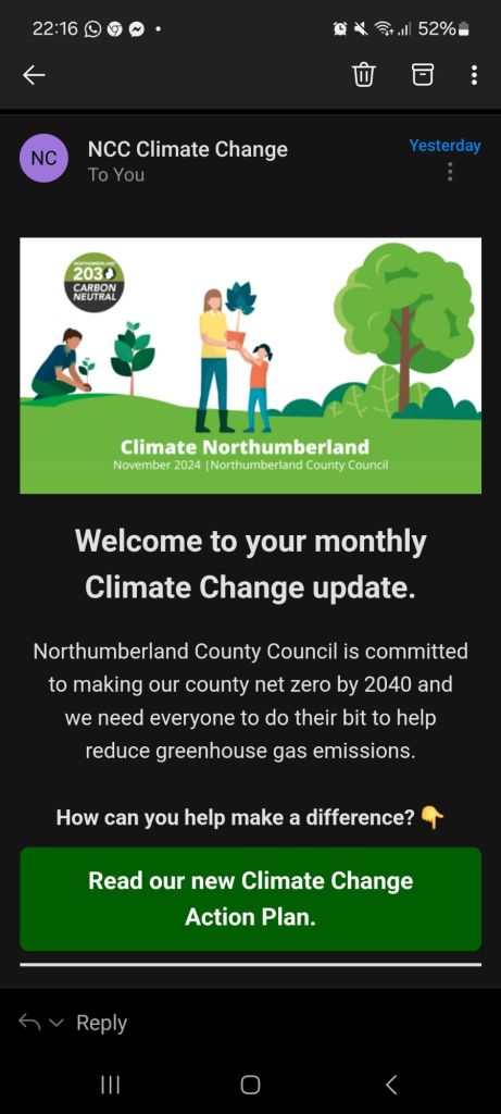 The Northumberland Climate Change November Update email dropped into my inbox yesterday (8th November 2024),