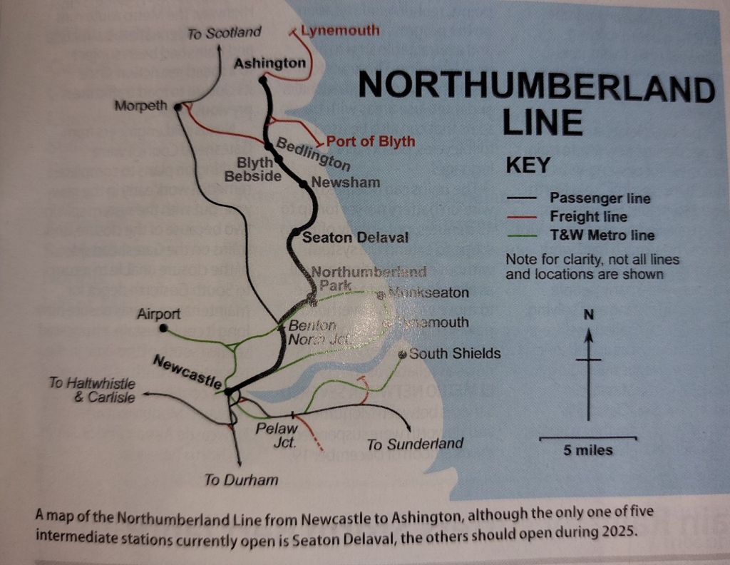 As can be clearly seen from the above map (The Railway Magazine, January 2025 p. 9), the link between Bedlington, and the ECML (shown in red) could easily be utilised to provide connections between up to five of the Northumberland Line stations (only exception is Ashington due to the track layout seen above), and those in North Northumberland or Scotland (essentially anywhere north of, and including Pegswood, unfortunately not shown).