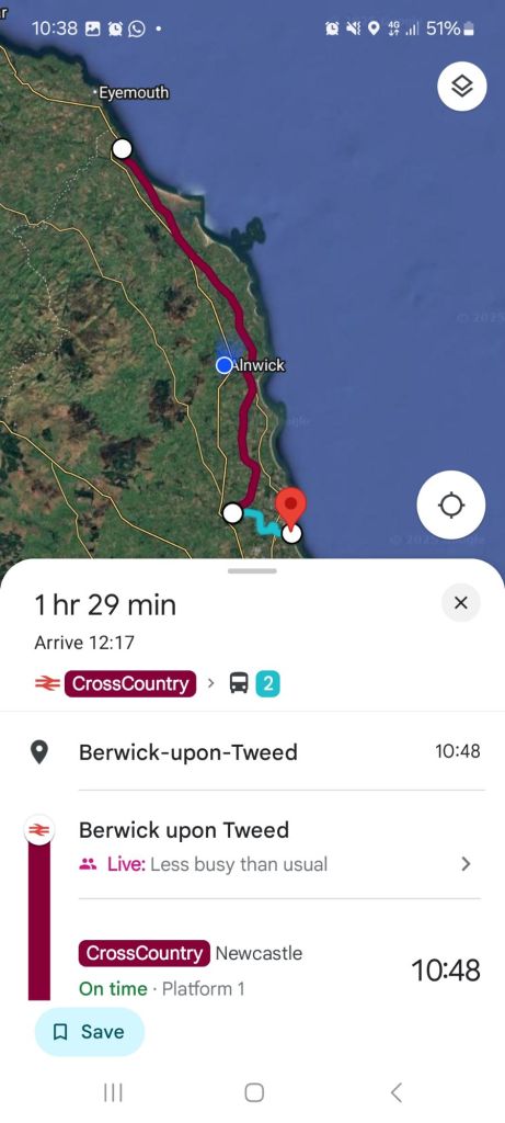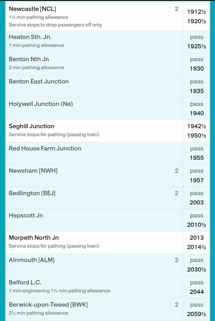 By comparison, the above railtour illustrates that a direct route is both possible, and advantageous by offering a direct route, bearing in mind that this is a 600t+ train limited to 75mph, Newsham to Berwick is timetabled to take just over an hour; a modern train, capable of 100mph or even 125mph (used daily on the ECML) could cut this journey time significantly, in the region of 55mins should be possible based on existing timetables, and possibly further enhanced with investment into the route.