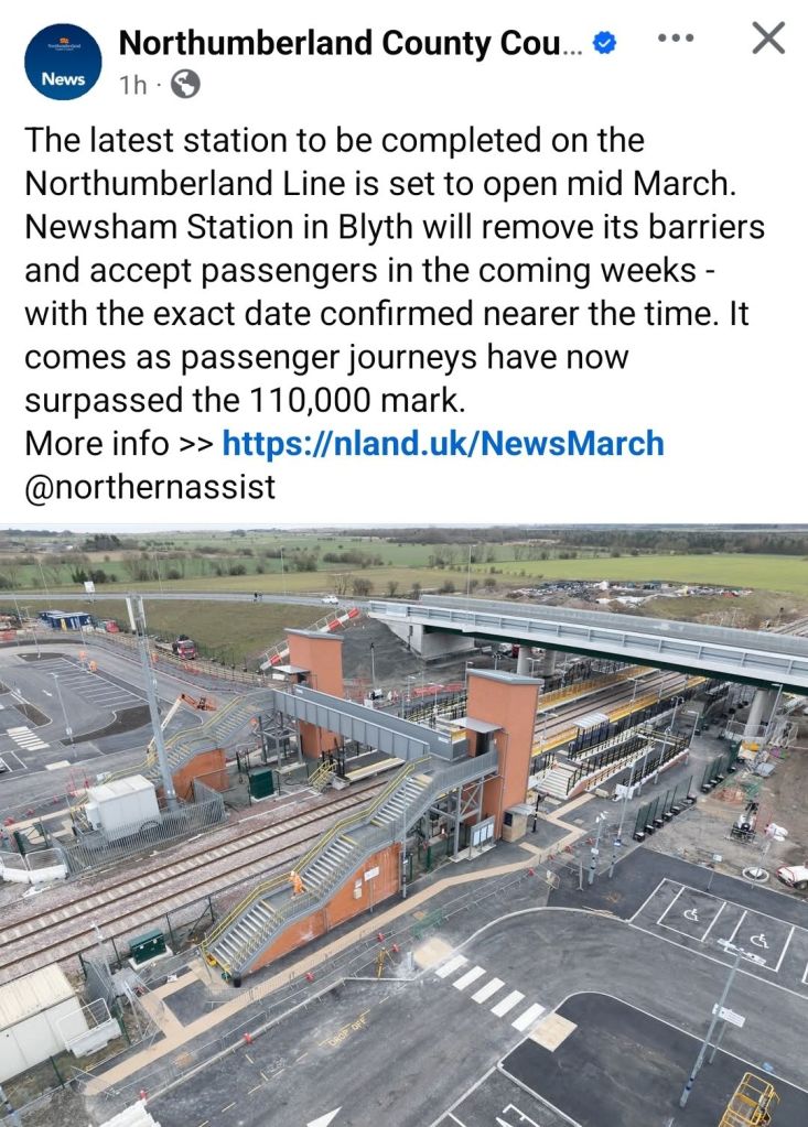 Today, Friday 21st also marks an announcement on the opening of Newsham station on the Northumberland Line during March 2025 (the precise date as yet unspecified), and that over 110,000 passengers have been carried since the line opened, with just two stations on December 15th 2024.
