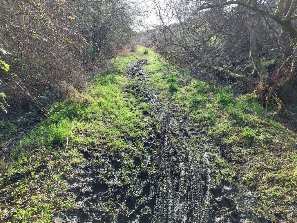 Beyond this point, it is slightly more challenging to pass due to overgrown bushes and trees, with some having fallen across the trackbed in places. The drainage on this section is also blocked, making some sections quite ‘clarty’, a good pair of boots is recommended!