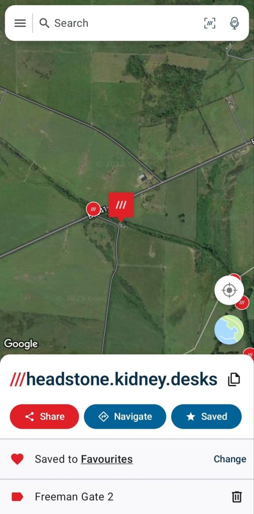 For simplicity for those following this route, what3words has been used to label key locations, but is shared alongside mapping/aerial photographs to hopefully make clear where each site is.