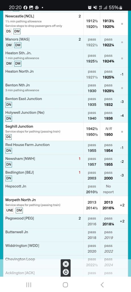 While this is excellent for a southbound trip, going northward is very indirect, such as my own portion of a trip home between Newsham to Alnmouth stations on the 15th April 2025, a good example of a ‘within Northumberland’ trip that is now rail served in both places, but is inconvenient due to the indirect route, which adds time and inconvenience of changing trains and the waiting time between services.