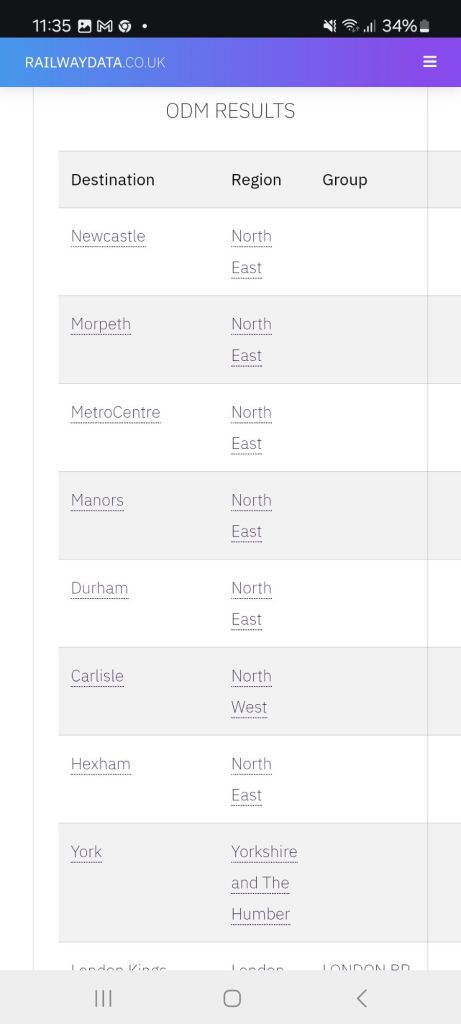 Again, like Morpeth above, this is a far from exhaustive list of origin/destination stations, with data as granular a single trip to/from Cramlington to Yeovil Junction for example being listed on the source website.