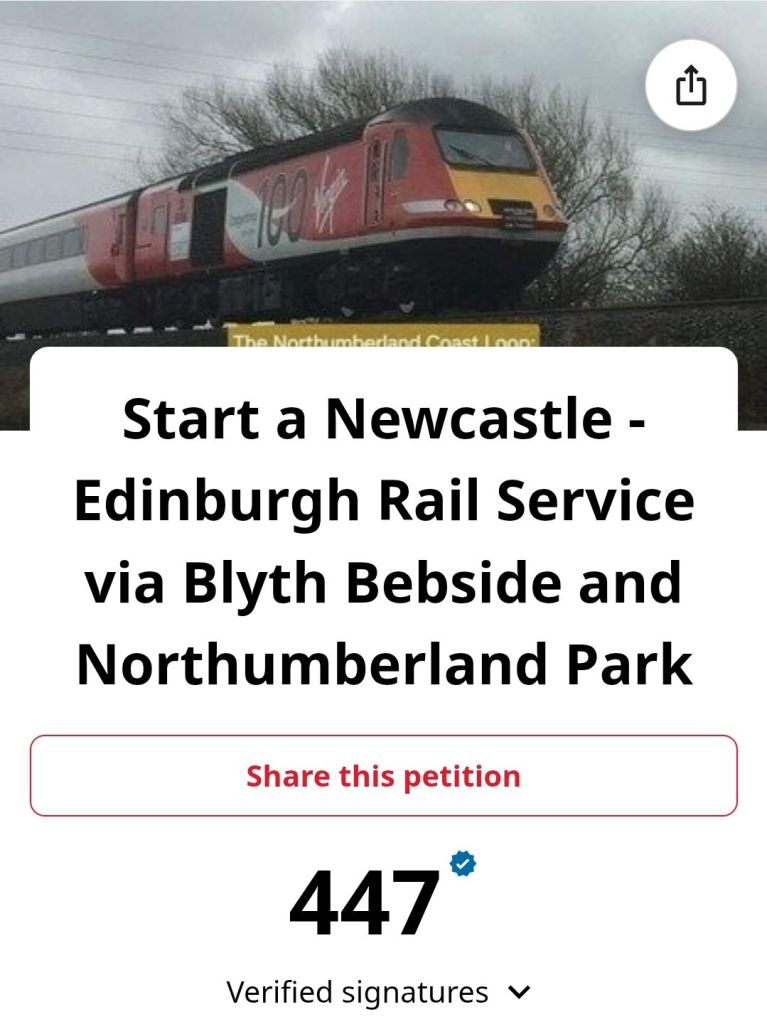As can be seen from the map above, the proposed Northumberland Coast Loop would leave Central Station and follow the route of the Northumberland Line as far as Bedlington, and in this diagram, would curve back towards the East Coast Main Line (ECML), using the existing line through the village of Hepscott, used predominantly by the GBRf ‘Alcan’ flow from North Blyth to Fort William.