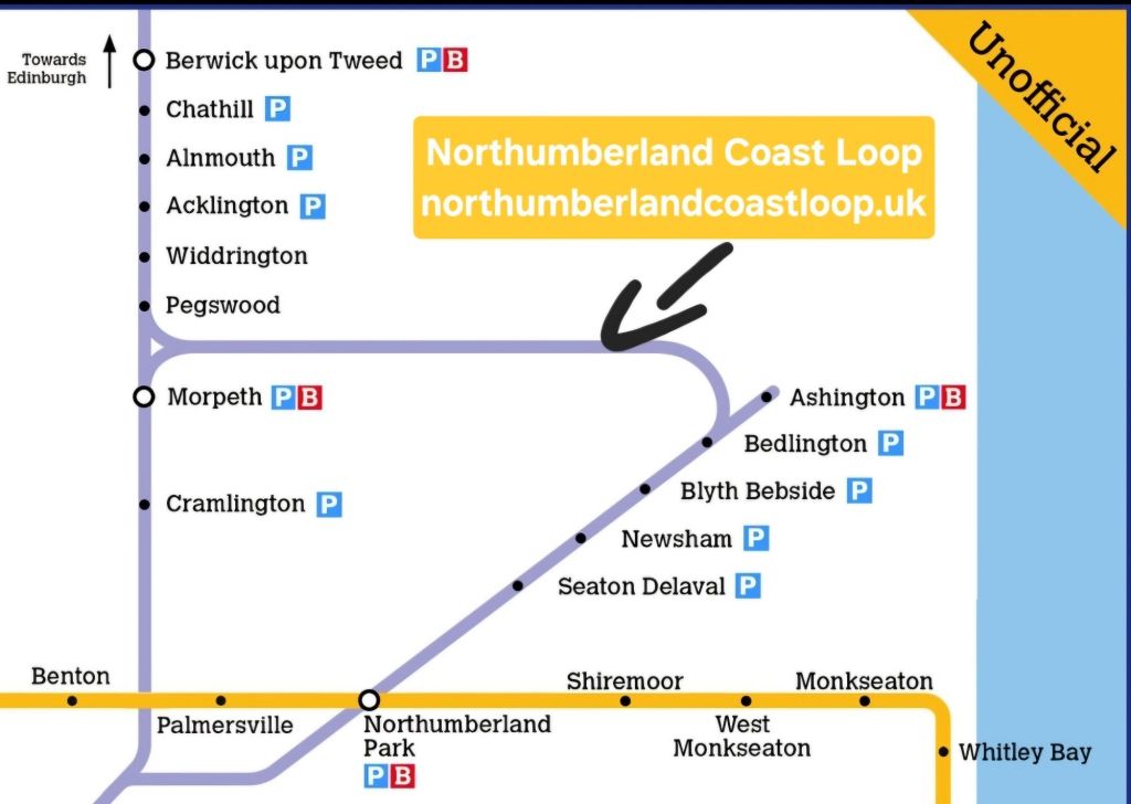 This route is intended to complement existing ECML services between Newcastle and Edinburgh via Morpeth and Cramlington, with the ‘loop’ via Bedlington, Blyth Bebside, Newsham, Seaton Delaval, and Northumberland Park intended to better connect these large communities well to the east of the East Coast Main Line (ECML) into North Northumberland and Scotland directly, rather than having to connect via Newcastle or Morpeth.