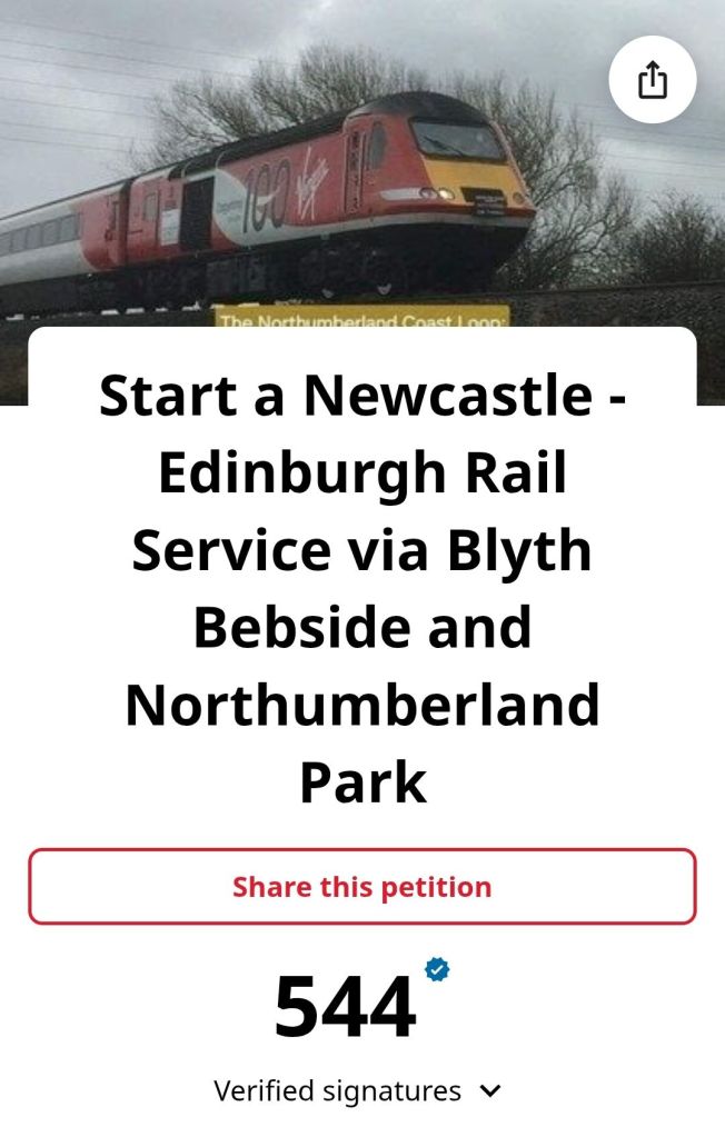 The petition for a rail service on the Newcastle – Bedlington – Edinburgh route has now reached 544 signatures, and continues to grow daily, thank you to all who’ve signed so far and if you haven’t already, please sign in using the link above.