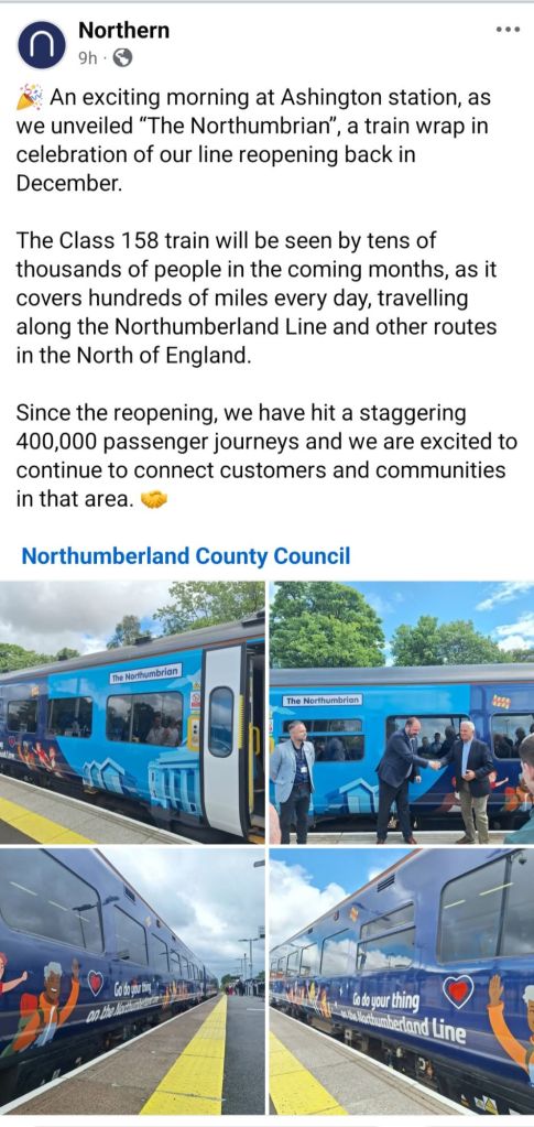 ‘The Northumbrian‘ Naming at Ashington, and Northumberland Line Continued Success