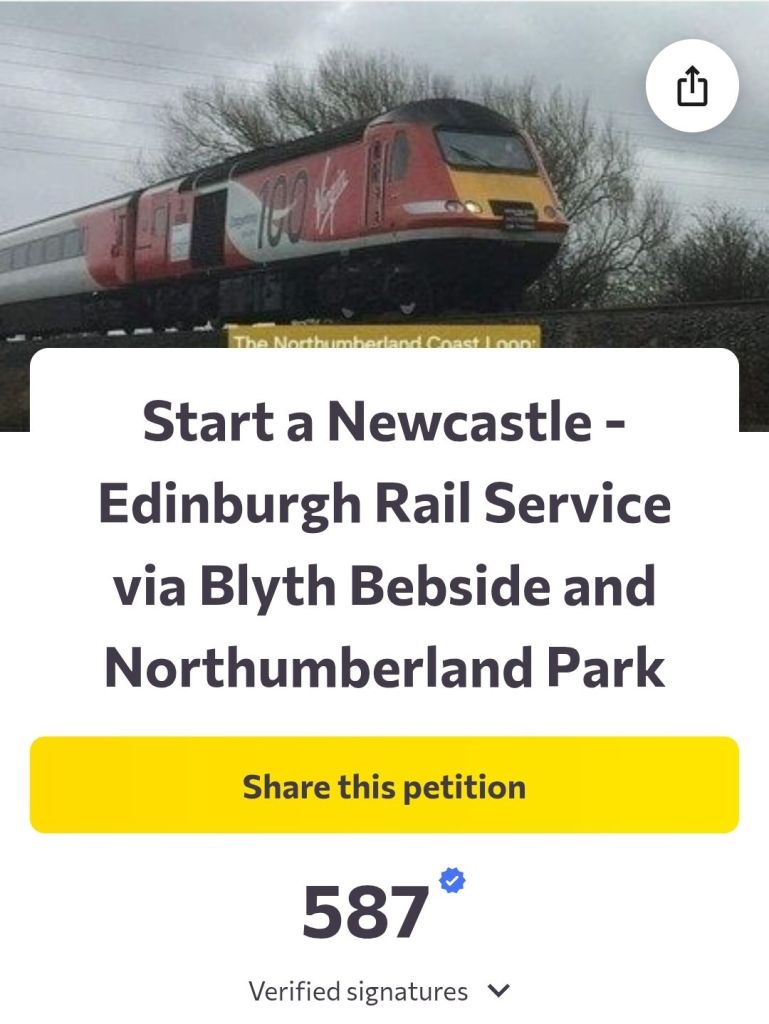 Newcastle – Northumberland Coast Loop – Edinburgh Rail Service Petition