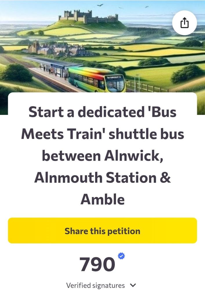 If you’d like to sign this petition, please do so here: https://www.change.org/AlnwickAlnmouthAmbleBusMeetsTrainCampaign