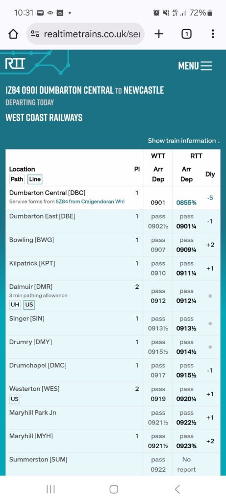 ‘The Royal Edinburgh Military Tattoo and Waverley Weekender‘, a railtour organised by UK Railtours, and operated by the West Coast Railway Company had a section the return leg of the trip from Dunbarton, Scotland to Newcastle-Upon-Tyne, England due to travel over the proposed Northumberland Coast Loop route today (Monday 25th August 2025).