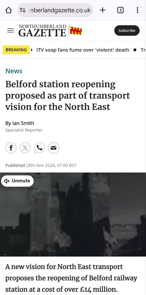 In the above article, Cllr Thompson himself states that “Hundreds of thousands of tourists visit north Northumberland each year and a station at Belford would be in the epicentre of the tourist trade.“, so if the A1 is highly unlikely to be built in the coming years, why not get Belford Station rebuilt and opened to passengers instead?