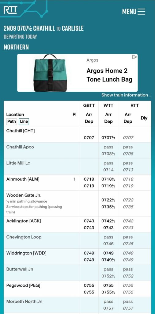 Indeed the existing ‘Chathill Flyer’ (train 2N09) does this after its call at Alnmouth heading south towards Newcastle, sitting in the loop at Wooden Gate for 13 minutes (from 07:22½ to 07:35½) to allow for a passing train.