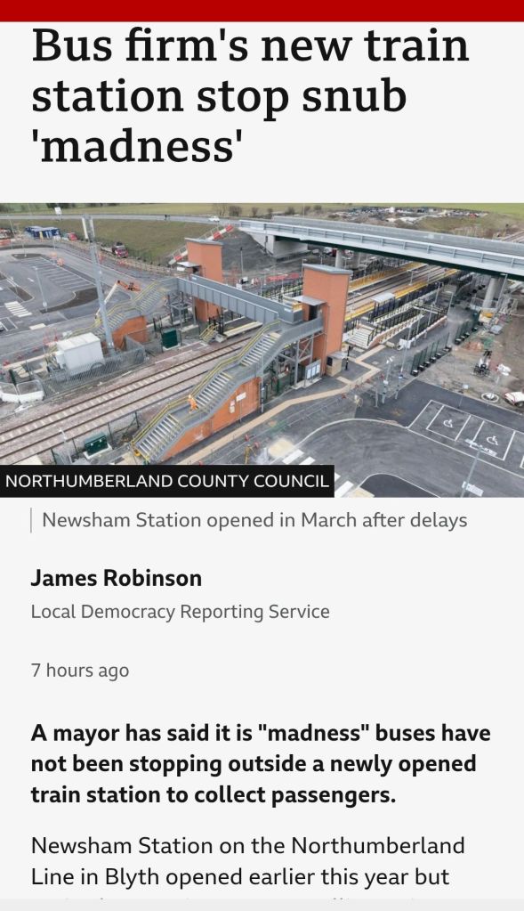 With buses receiving subsidies from the North East Combined Authority for things like the £2.50 fare cap, hopefully a better integation of buses and trains might be achieved by making serving stations a condition of subsidy?