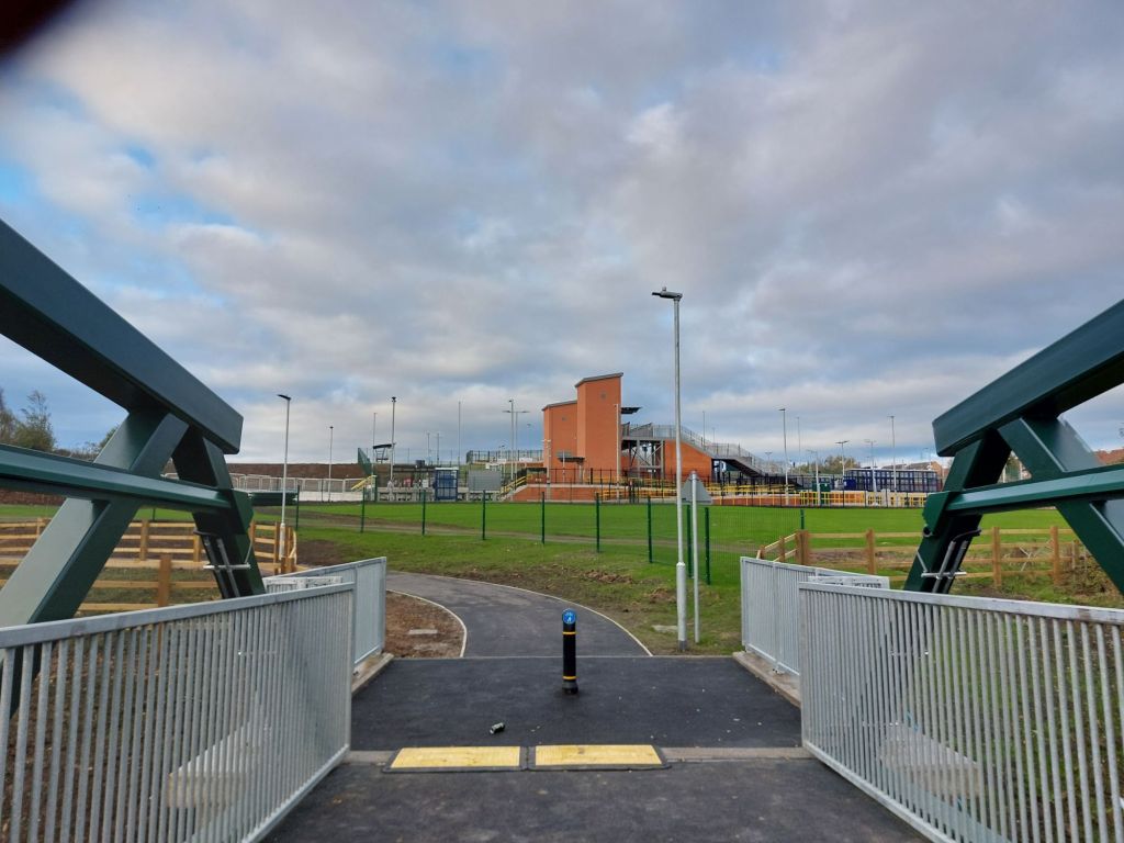 As part of the new station, and to avoid large numbers of pedestrians and cyclists using the A193 bridges to reach the station, a new bridge has been built over the A189 Spine Road, creating a much more traffic free route between the town of Blyth and Blyth Bebside station.