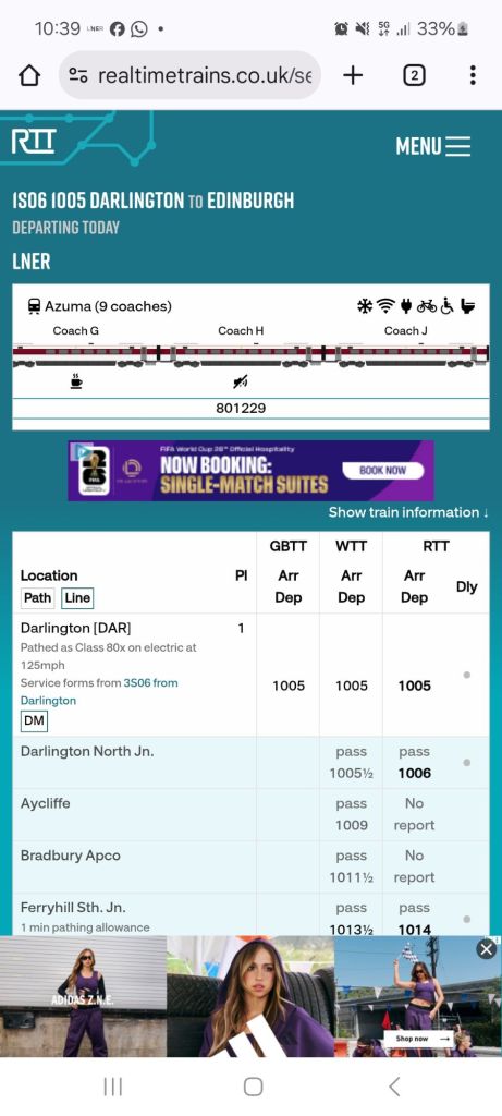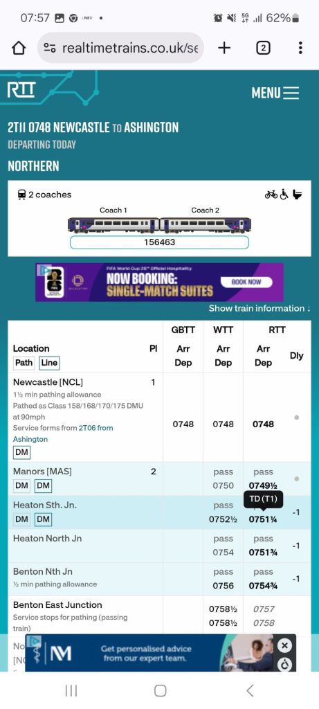 Returning to yesterdays trip, the Voyager run was timetabled to take 26 minutes to reach Newcastle, and due to arrive at 07:34, which it did on-time.