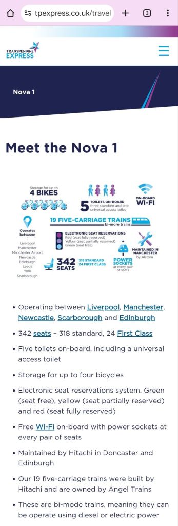 As can be seen below on the fleet data sheet, each train has 342 seats, with 318 of those in Standard class, and 24 in First class, but perhaps most importantly, they can operate on both electric power, but also diesel, meaning that the unwired Northumberland Line is no barrier to operating them over these lines.