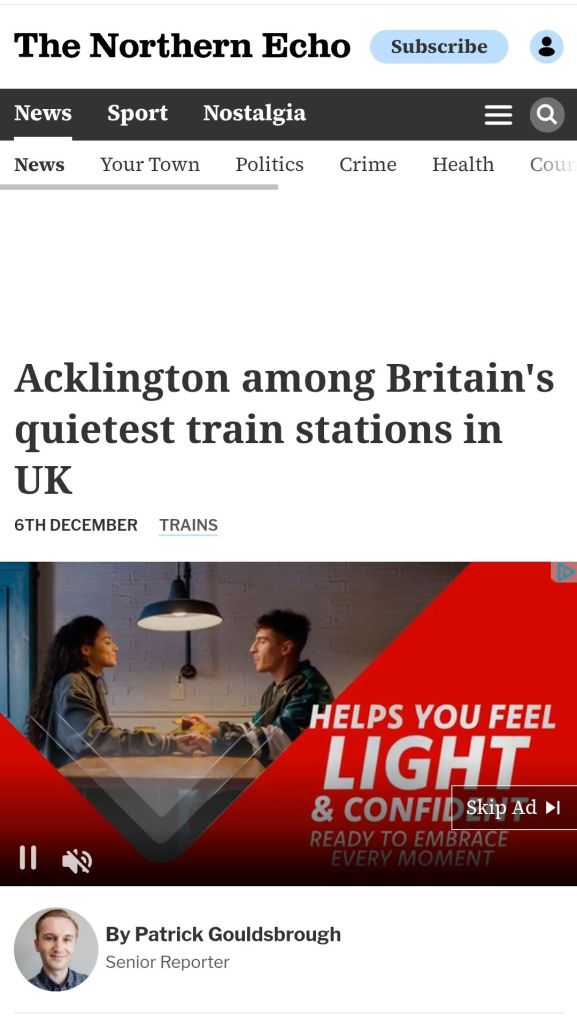 A recent article in The Northern Echo ‘Acklington among Britain’s quietest train stations in UK‘, shows that whilst still in the 50 least used stations in the UK, with just 856 entries and exits in the 2024/25 railway ticketing year, this was a major increase on the previous year, which had 550 in 2023/24.