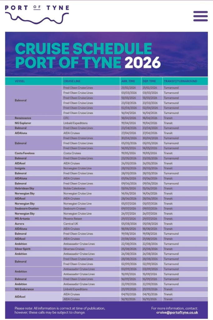 Cruises could similarly use Northumberland Park as ‘local’ mainline station for access to the North East more broadly; many, if not all cruises using the Port of Tyne in 2026 are calling for just a single day, presumably arriving early morning and departing in late evening, giving a limited ‘ashore time’ from departing the ship to getting back and boarding again bound for the next port of call.