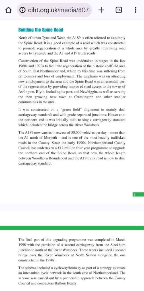 Information from CIHT, shown below states that the A189 carries over 30,000 vehicles per day, so assuming a modal shift of around 1543 car trips by the Northumberland Line, this would represent around a 5% drop in road traffic. This will be helping to ease issues such as congestion, especially on roundabouts like Moor Farm; it would be interesting to see if data before and after the Northumberland Line shows a fall in road traffic at Moor Farm and on the A189 more broadly?