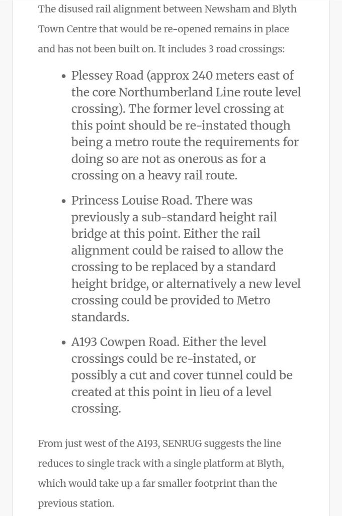 In my own view, a branch into Blyth from Newsham is now highly unlikely to be rebuilt due to the three road crossings that this route would require, as well as massive disruption to active travel corridors linking several schools adjacent to the route. Rebuilding the railway would mean several foot crossings or bridges being needed to keep active travel routes crossing the old trackbed open and coupled to the major disruption to traffic that three level crossings in the town could cause both in building and in operation, I don’t think such a link is the correct course of action.