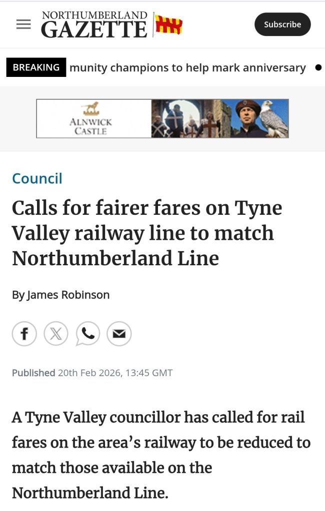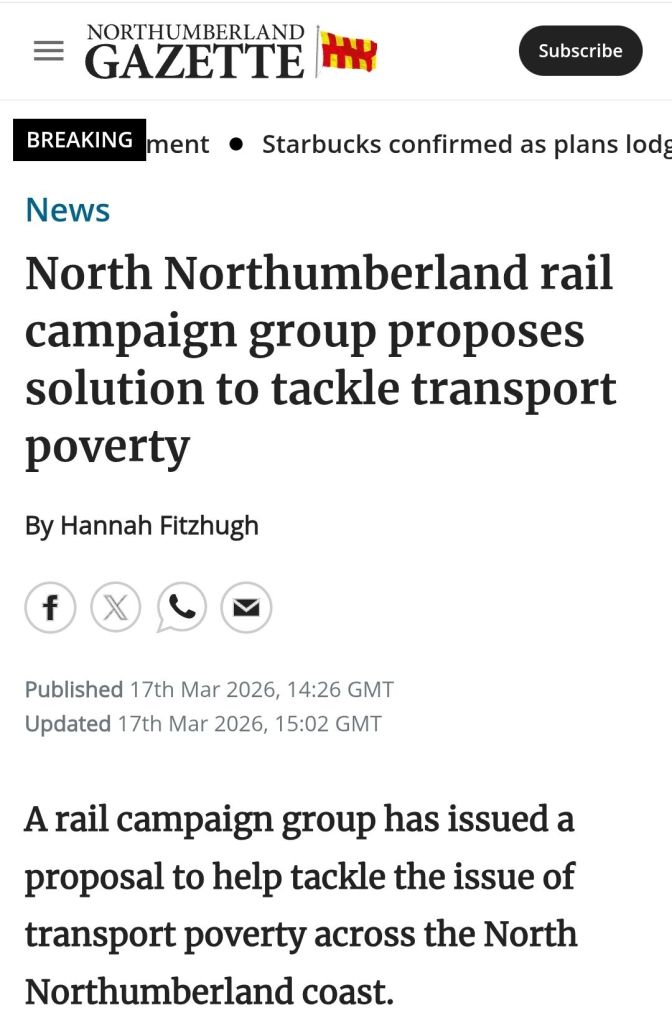 In a very similar vein to the CRAG post above, is this one from January 2026 and calls by Cllr Georgina Hill of Berwick for greater support for Northumbrian post-16 students in Berwick to have support to reach Newcastle to study.