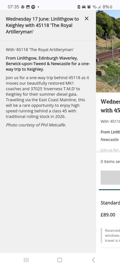 On Wednesday 17th June, the SRPS is operating a one-way special train over the ECML behind 45118 ‘The Royal Artilleryman’ for its attendance at the KWVR Diesel Gala that weekend.