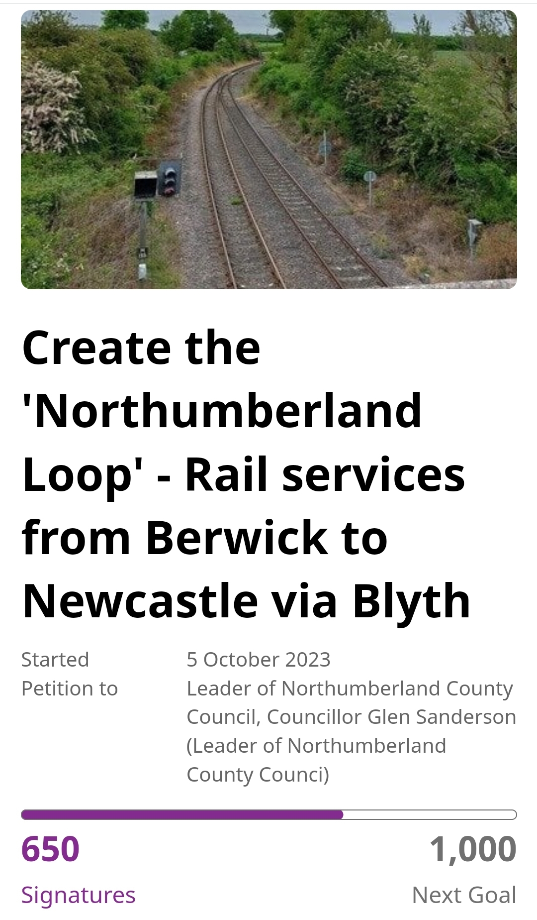As of 11th August 2024, the Northumberland Coast Loop petition has just reached 650 signatures since starting in October 2023. The aim of this petition is to use the Hepscott Line as one of the next expansions of the Northumberland Line beyond the soon to open Newcastle – Ashington route. This route is advantageous byContinue reading “Northumberland Coast Loop Petition reaches 650 signatures, and a stay in Berwick-Upon-Tweed.”