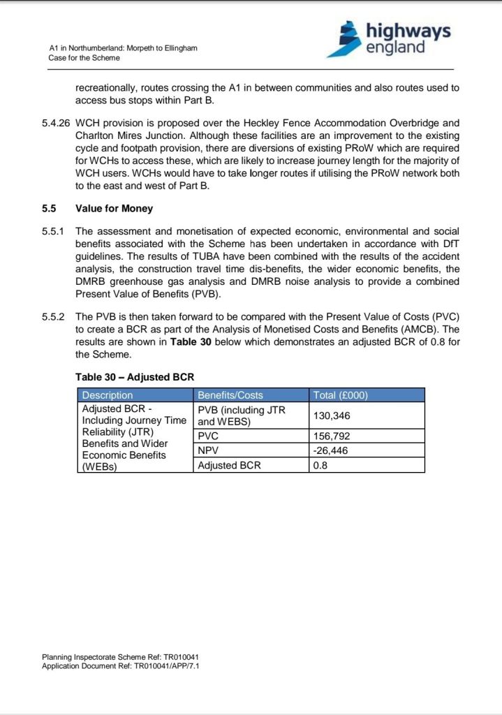 The case against dualling doesn’t end at just being poor value for money, it also has adverse impacts on a large amount of ancient woodland, especially in and around the Coquet valley, as well as being responsible for 2,487,000 tonnes of CO² over its lifetime (build plus traffic, which is still significantly reliant upon petrol & diesel vehicles), a do-nothing scenario would result in lower emissions, especially if coupled with modal shift away from driving (which this campaign advocates for), and a do-nothing would also protect habitats such as ancient woodland, alongside allowing the £500m+ of financing to be allocated elsewhere.