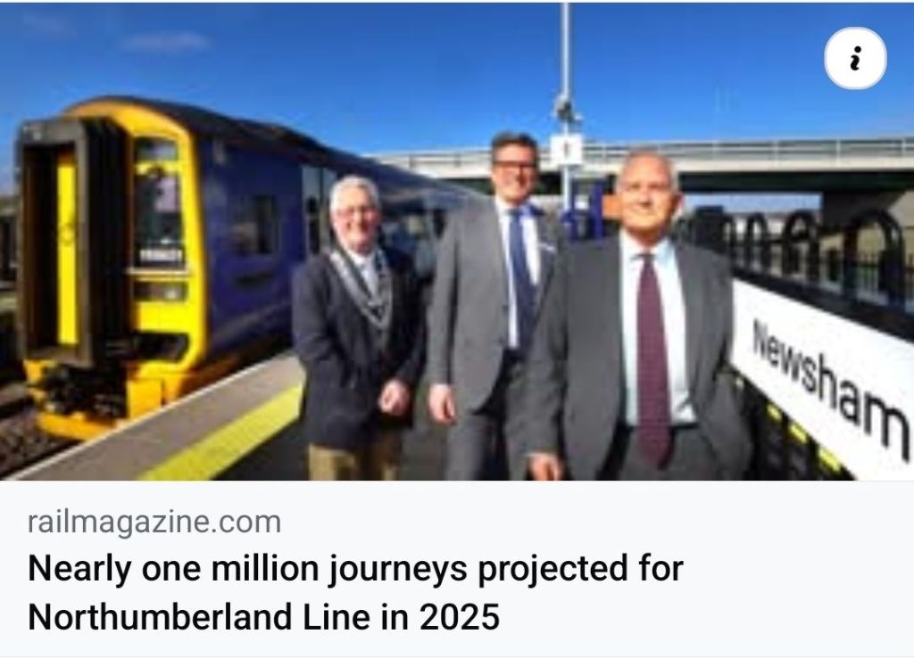 News has just broken from The Chronicle that the Northumberland Line is expected to reach 250,000 trips by Easter 2025; mere months after opening in December 2025, and with only half of the stations opened.