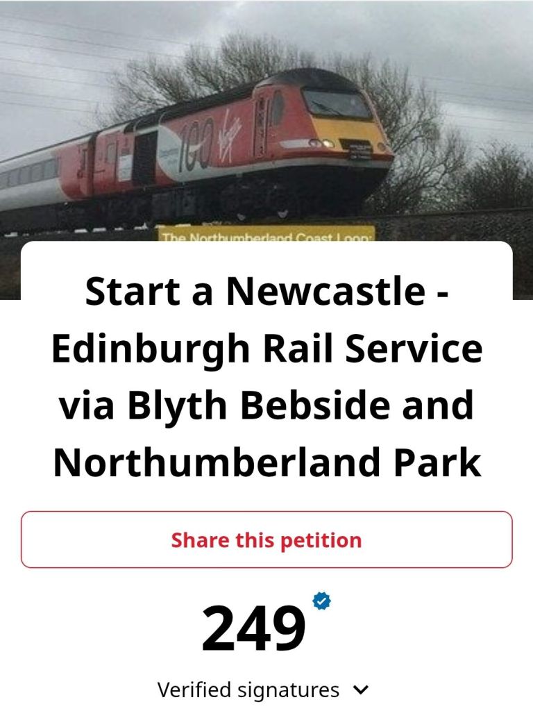 Similarly, a popular proposal that would complement the wider bettering of public transport is for a dedicated ‘Bus Meets Train shuttle between Alnwick, Alnmouth Station, Warkworth, and Amble, with a petition for this again performing very strongly to date, despite only recently being launched. Again this bus service would cost a mere fraction of that proposed to be spent on dualling the A1 in Northumberland, but would give potentially greater economic and certain environmental benefits to the popular tourist towns of Alnwick, Warkworth, and Amble.