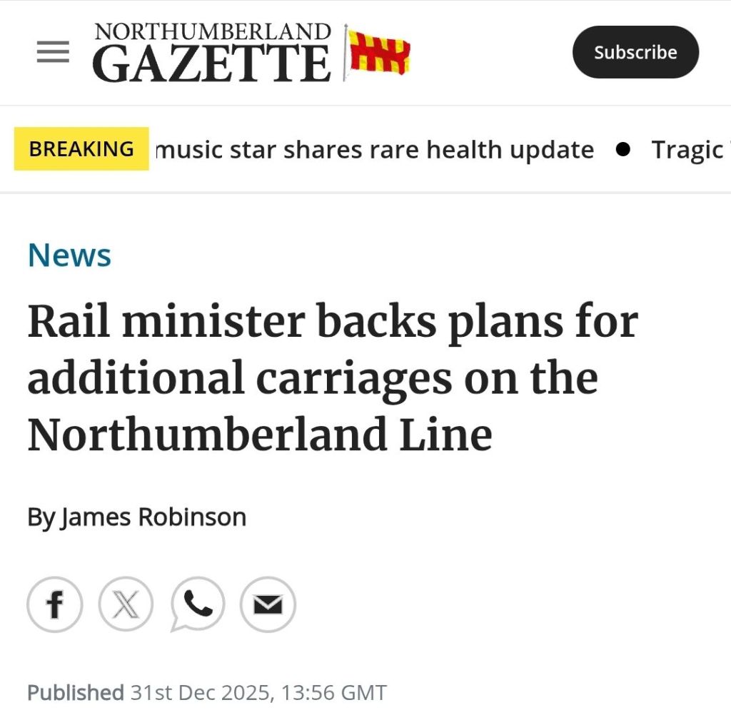 In this article from North East Bylines, ‘More good news on the Northumberland Line‘, the call by Northumberland County Council for more four carriage trains to work over the Northumberland Line on a permanent basis has been echoed by Rail Minister Lord Hendy of Richmond Hill, where he has asked Northern (an ‘operator’ that is part of the DfT operated railway, which also includes ‘operators’ such as LNER and Transpennine Express) to see what is possible to get extra carriages operating on the route.