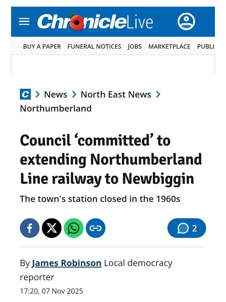 The detailed research into the feasibility of extending the line beyond Ashington will be investigated by staff at Northumberland County Council in February 2026 according to the news article; hot on the heels of the hopeful completion of Bedlington, and Northumberland Park stations, which are due to open in early 2026 (presumably January/February but no official date has yet been set for either station).