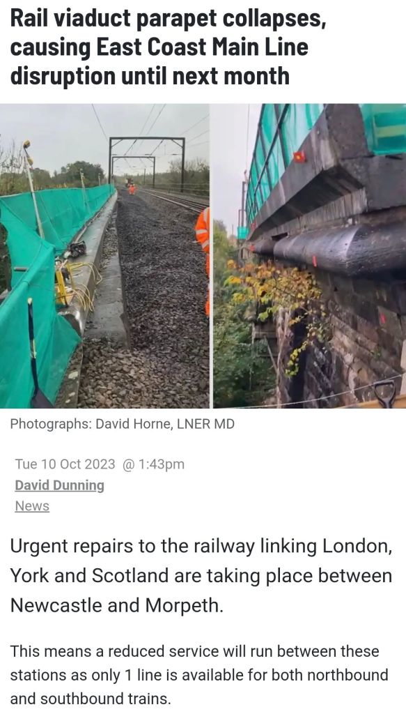Fortunately, the damaged viaduct remained partially open until repairs were completed, but driver knowledge of the diversionary route via Bedlington would certainly be of benefit in added resilience for rail services, and one of the best ways to achieve, and to maintain route knowledge is regular running of trains over the route.